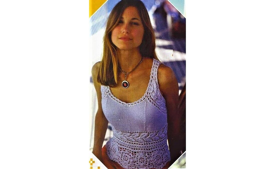 Charming summer top T-shirt knitted and crocheted.