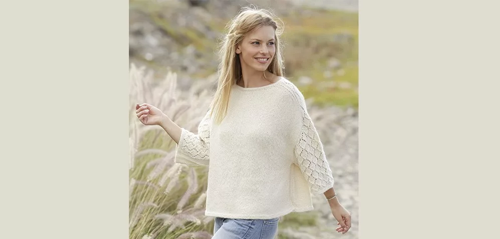 Красивый пуловер с ажурными рукавами свободным силуэтом — для любого возраста и погоды.