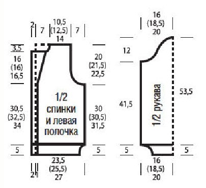 Через 50 см = 140 р. (52 см = 146 р.) 54 см = 152 р. от нижней планки закрыть оставшиеся 26 (30) 34 л. плеча.