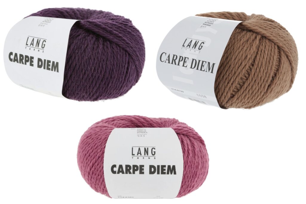You will need: пряжа LANGYARNS “Carpe Diem” (70% овечьей шерсти, 30% шерсти альпака; 90 м/50 г) — 450 (500) 550 г цикламенового цвета, 350 (400) 450 г баклажанового цвета и 300 (300) 350 г цвета кэмел; круговые спицы № 5,5; крючок № 5.