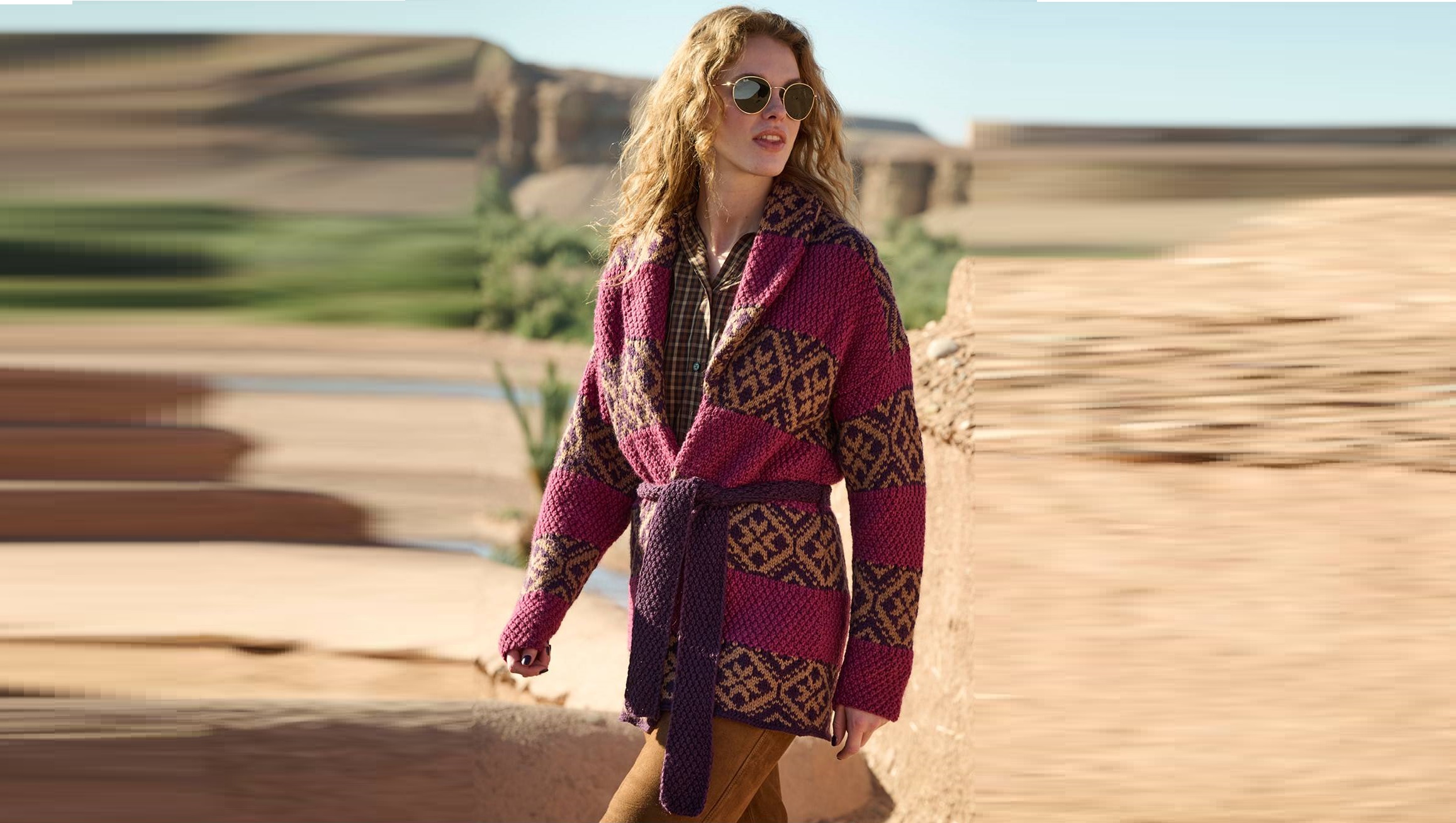 В результате получился жакет длиной до бедер, с шалевым воротником и завязывающимся поясом -отличный спутник для прогулок по лесам и полям.