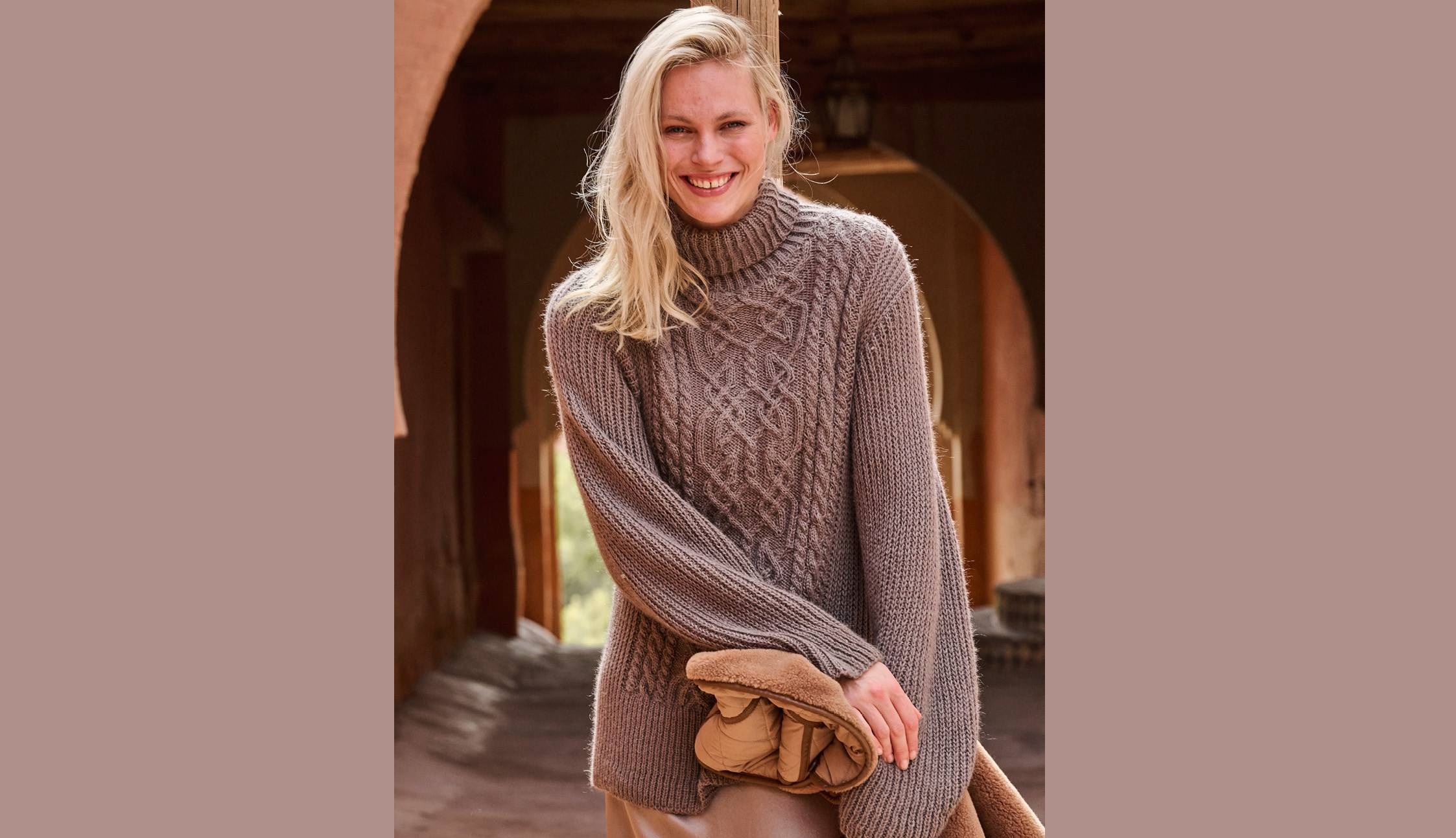 Гармоничное сочетание эффектных аранов, полупатентной резинки и высококачественной пряжи, содержащей шерсть ламы, мохер и шелк, сделает этот пуловер оверсайз хитом сезона. Объемный воротник и высокие боковые разрезы — те самые актуальные детали, которые мы все чаще видим сегодня.