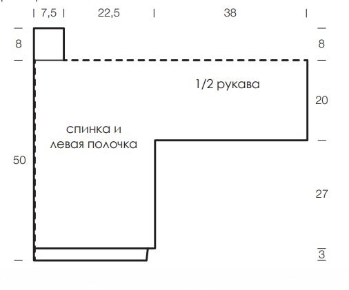 На высоте планки 3,5 см = 9 р. закрыть петли по рисунку. Выполнить боковые швы и швы рукавов.