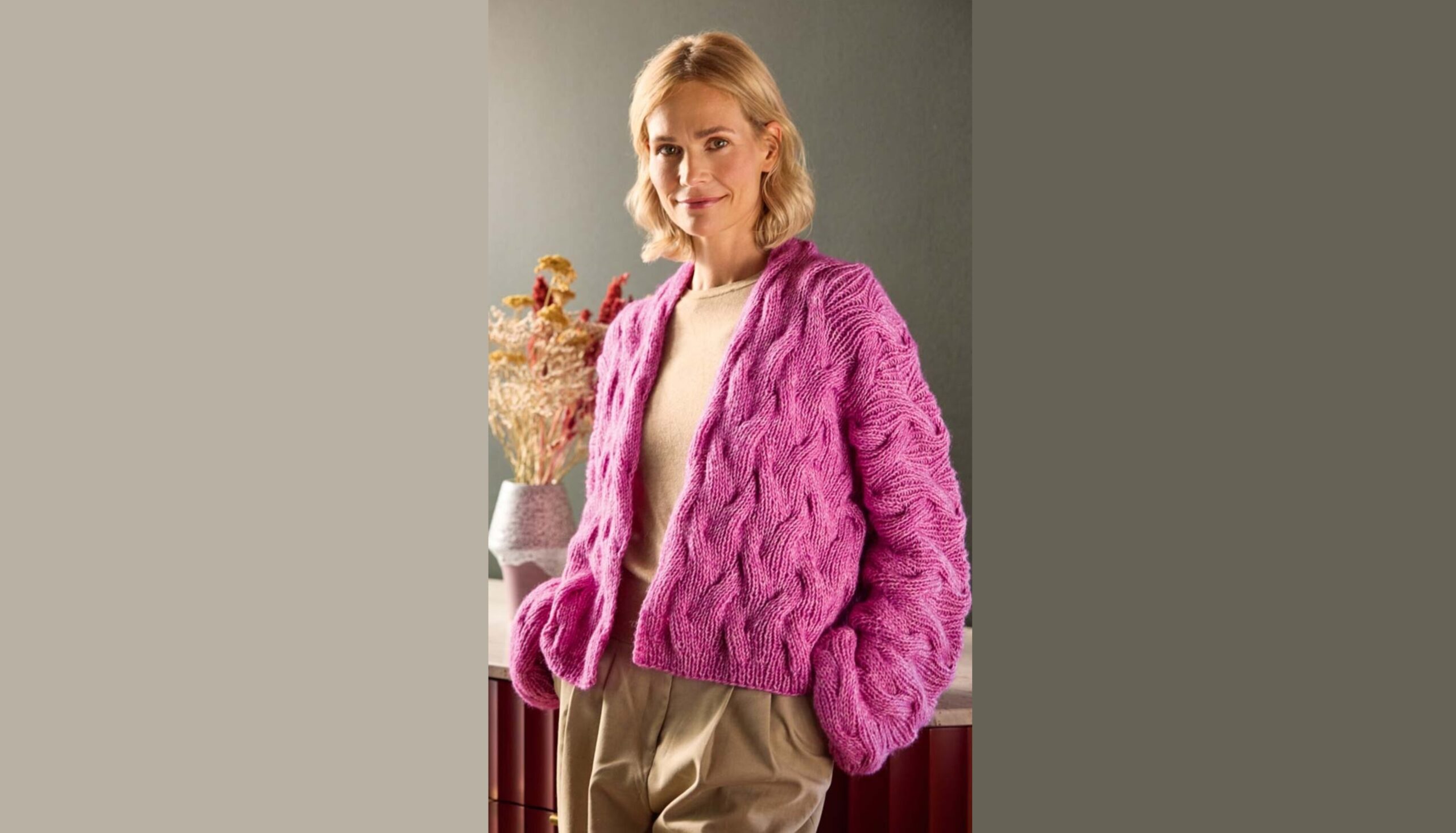 You will need: 650 г цвета фуксии меланжевой (цв. 29) пряжи Natural Alpaca Pelo (63% хлопка, 31% альпака бэби, 6% шерсти мерино, 125 м/50 г) фирмы Lana Grossa; прямые спицы № 5,5, круговые спицы № 5,5 длиной 120 см.