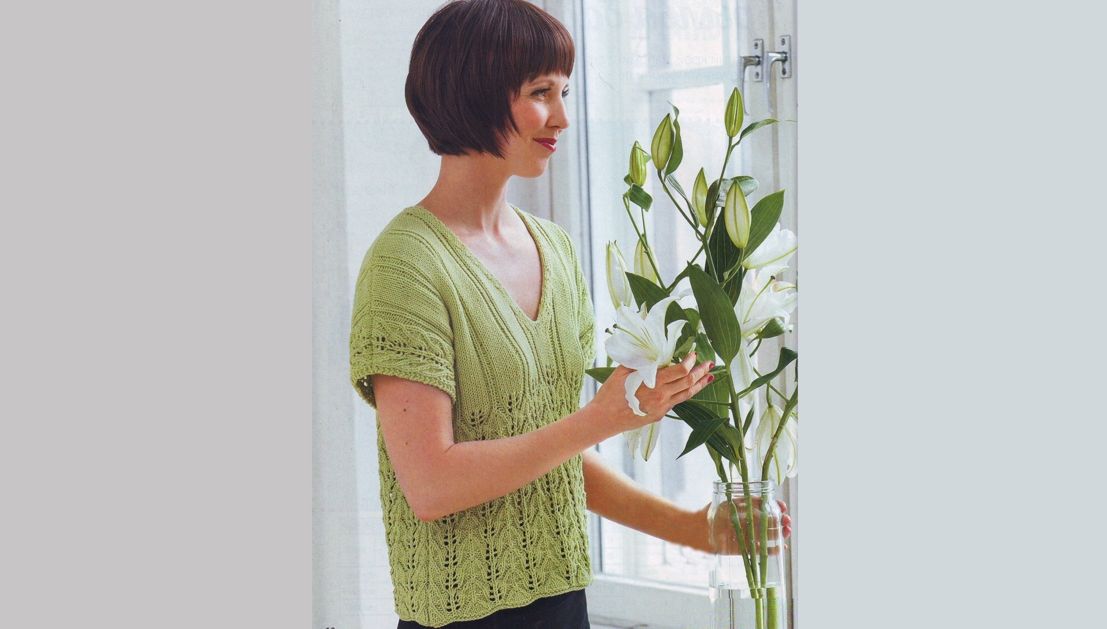 Summer top in light green with an openwork pattern.