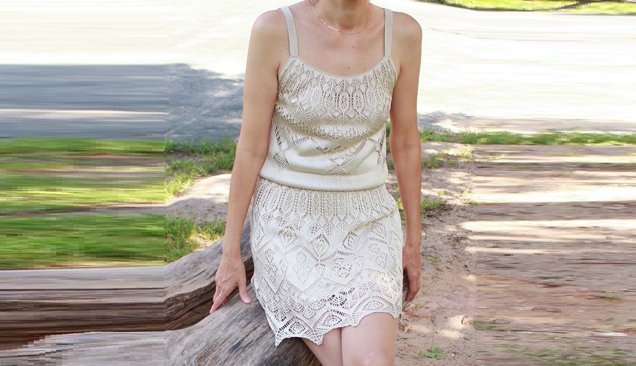 Платье можно вязать двумя способами: классическим шетланлом (лицевые петли в лицевых и изнаночных рядах, по кругу – лицевыми, меняя направление вязания в каждом ряду) либо т.н. ленивым шетландом (лицевые петли на лицевой стороне, изнаночные – на изнаночной, по кругу – лицевыми, не меняя направления вязания). Для шелка Карин я выбираю второй вариант, в этом случае его красота проявляется в большем объеме.