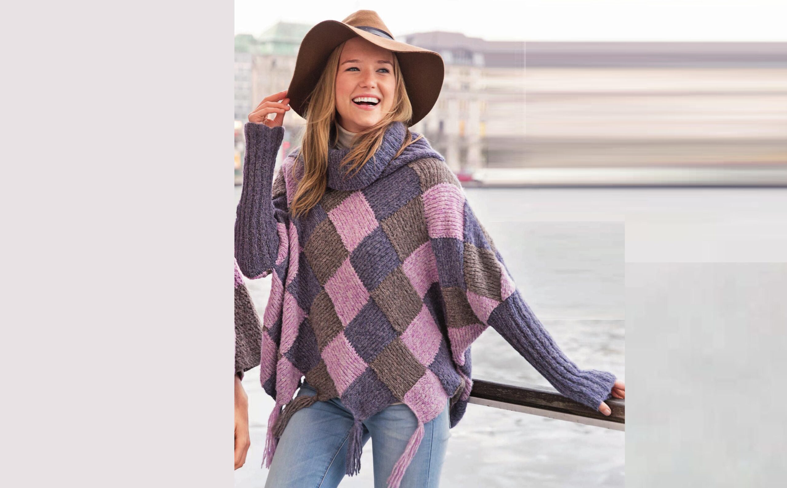250 г жемчужной меланжевой (цв. 00035), 150 г сиреневой меланжевой (цв. 00048) и 150 г бежевой меланжевой (цв. 00012) пряжи Schachenmayr NORDIC DREAM (57% вискозы, 35% шерсти, 8% полиамида, 90 м/50 г).