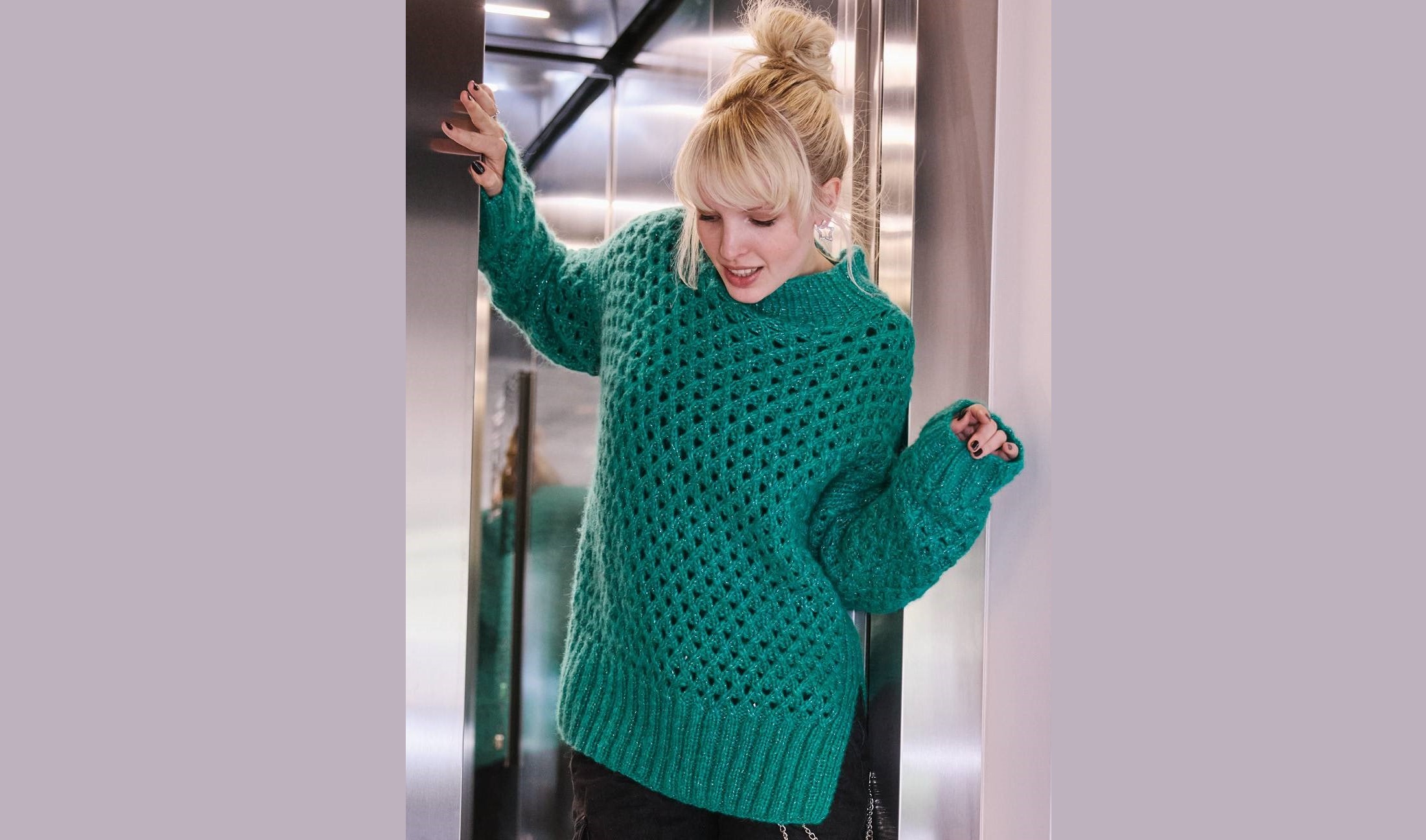 Несмотря на тенденцию к всепоглощающей женственности, сохраняется потребность в ежедневном комфорте. В таком случае почему бы вам не связать этот длинный пуловер с решетчатым узором?