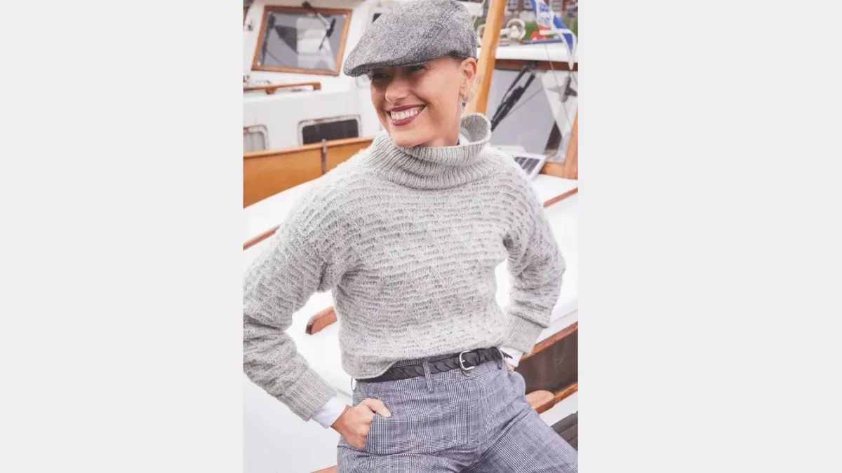 Модель выполнена попеременно двумя тонкими нитями и одной более толстой – так возникает красивая структура, подчеркнутая зигзагообразным узором из снятых петель. Пуловер свободной вязки довольно объемный, но в то же время очень легкий и дышащий.