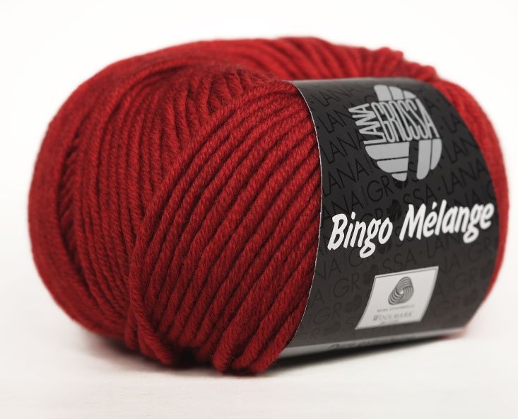 Materials: Lana Grossa Bingo Mélange (100% шерсть, метраж 80 м/50 г), 850 (900 – 950) г красно-меланж (цвет № 1031); прямые спицы № 3,5 и 5,5, а также круговые спицы № 3,5.