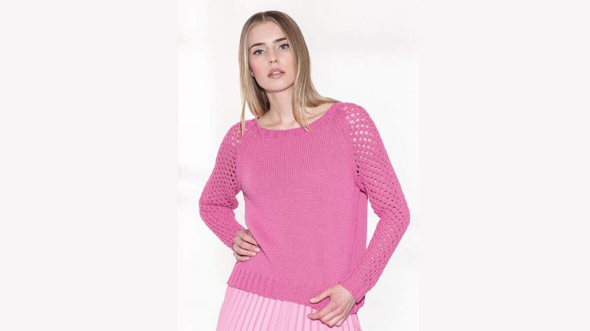 Розовый джемпер с сетчатыми рукавами из хлопка