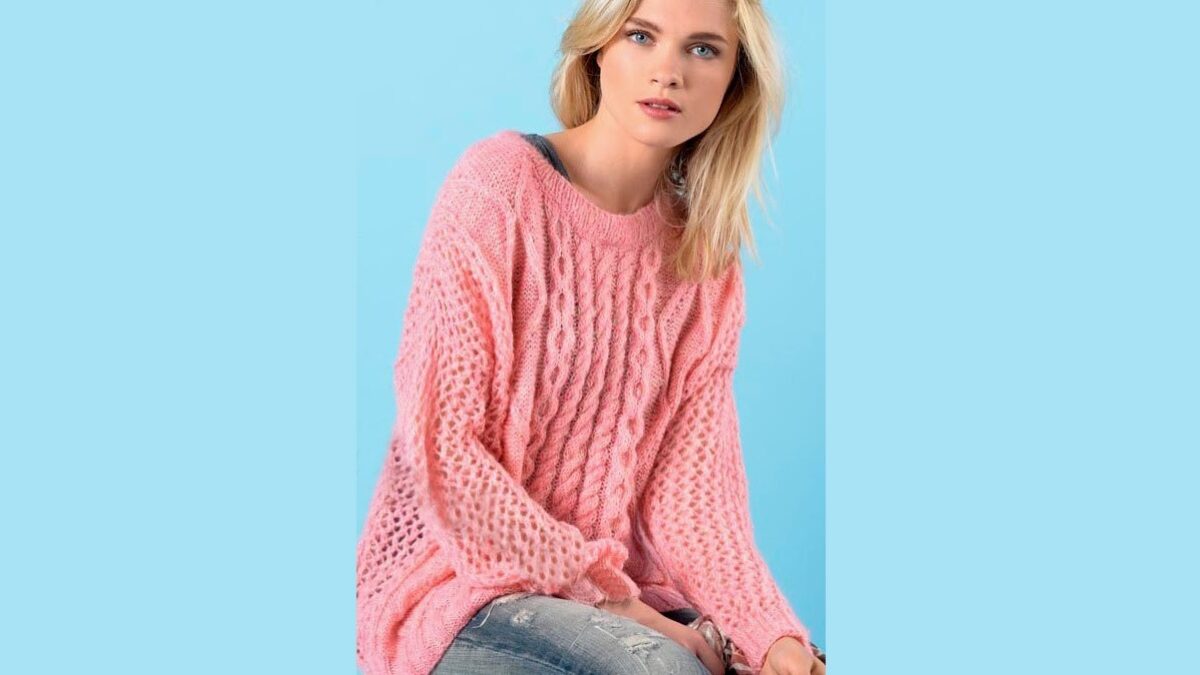 Выполняем плечевые швы. Пришиваем верх рукавов между отмеченными петельками спинки и переда. Выполняем боковые и рукавные швы. Пришиваем окантовку горловины кетлевочным швом по лицевой стороне изделия.