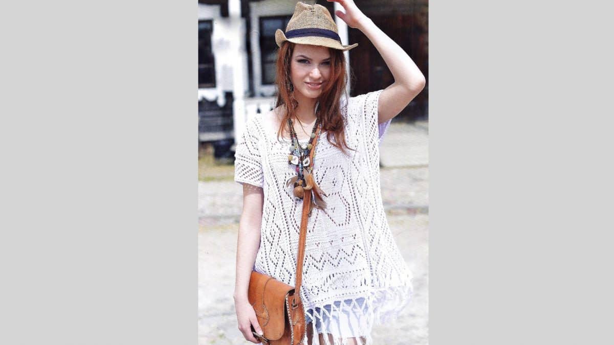 Только глянь: любимый многими вязальщицами узор “Бабочка” – а связать по этой идее можно хоть короткий кроп-топ, хоть топ подлиннее, хоть пуловер летний ( добавив рукава тем же узором! ), а если удлинить выкройку до нужной тебе длины – хоть на две ладони выше колена, хоть до пола – получится дивная туника или домашнее ( или дачное) чудесное платье к лету! Такой вот простор для твоей фантазии! Поройся в закромах (а хлопок есть в запасах всех Вязальщиц), или распусти, как вариант, что-то ненужное и свяжи вот такую очень нужную к лету красоту!