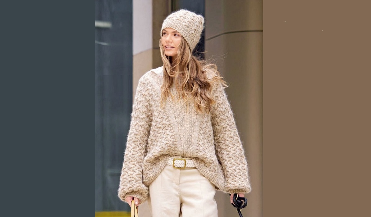 You will need: for pullover: yarn (81% wool, 12% mohair. 7% polyamide; 115 m/50 g) - 600 (650) 700 g beige; circular knitting needles No. 5,5 and 6: for the hat: yarn (81 % wool, 12% mohair, 7% polyamide; 115 m/50 g) - 100 g beige; 1 set of double needles No. 5,5 and 6.