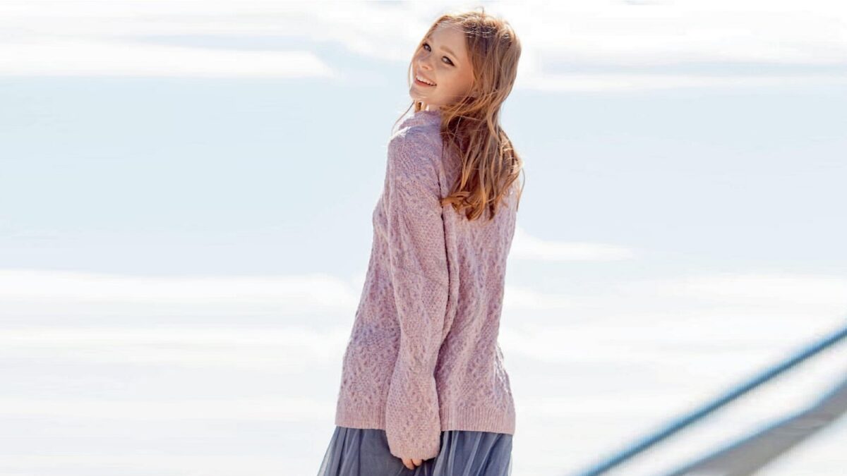 Пуловер из тонкой натуральной шерсти с добавлением кашемира примечателен не только нежным розовым цветом, но и выразительным узором из «кос» и ромбов