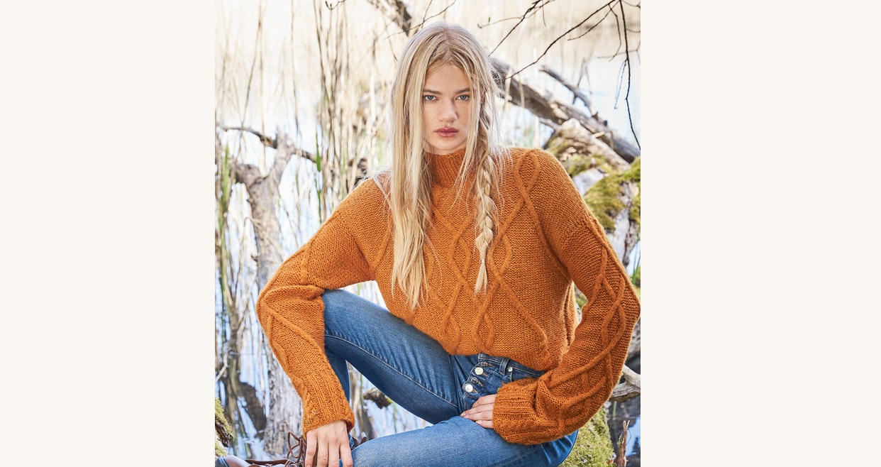 В шотландских традициях вязания арановых узоров. Пуловер с крупными ромбами, образованными переплетением