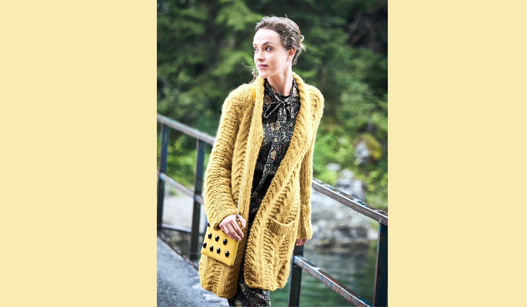 Удлиненный кардиган без застежки и с большими карманами вы сможете связать достаточно быстро благодаря использованию толстой пряжи и соответственно толстых спиц. Шерсть альпака придаст кардигану теплоту и комфорт, а броские «косы» – дополнительную привлекательность