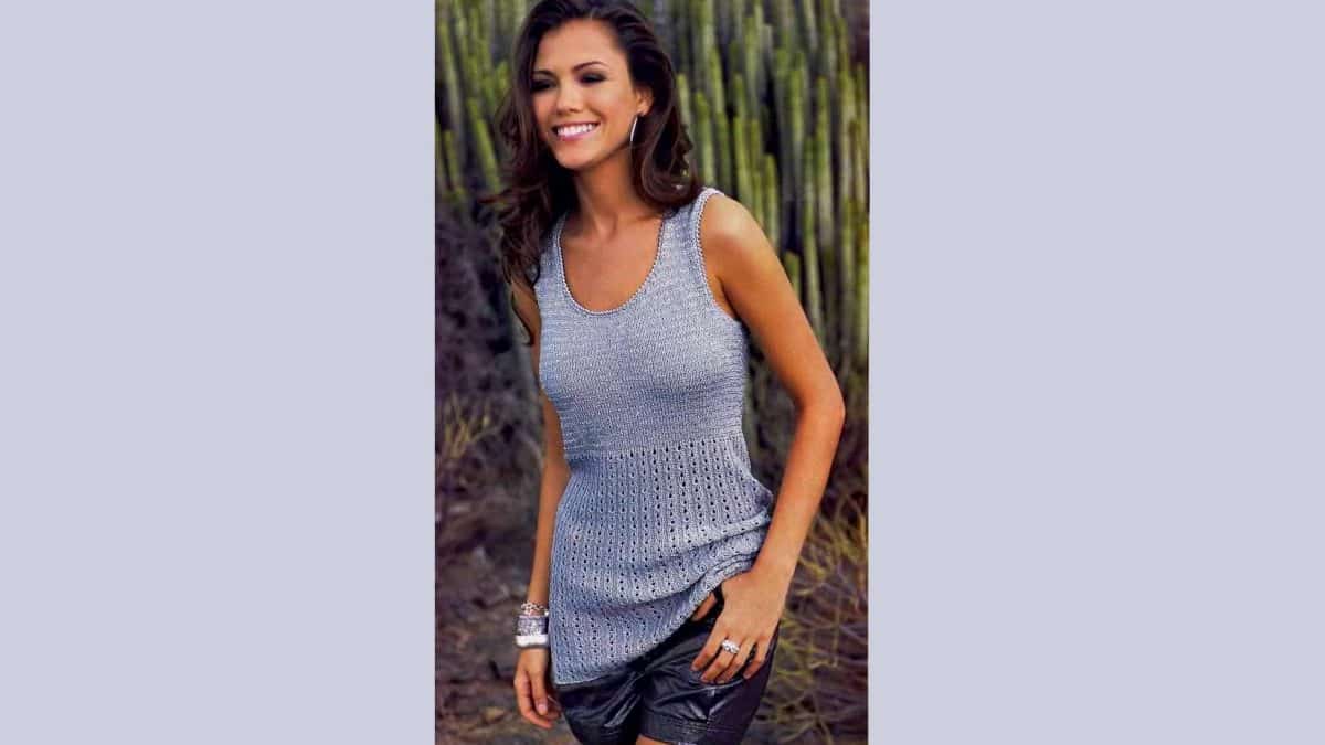 Через 23 (25) 27 см от начала пройм все петли должны быть убавлены.