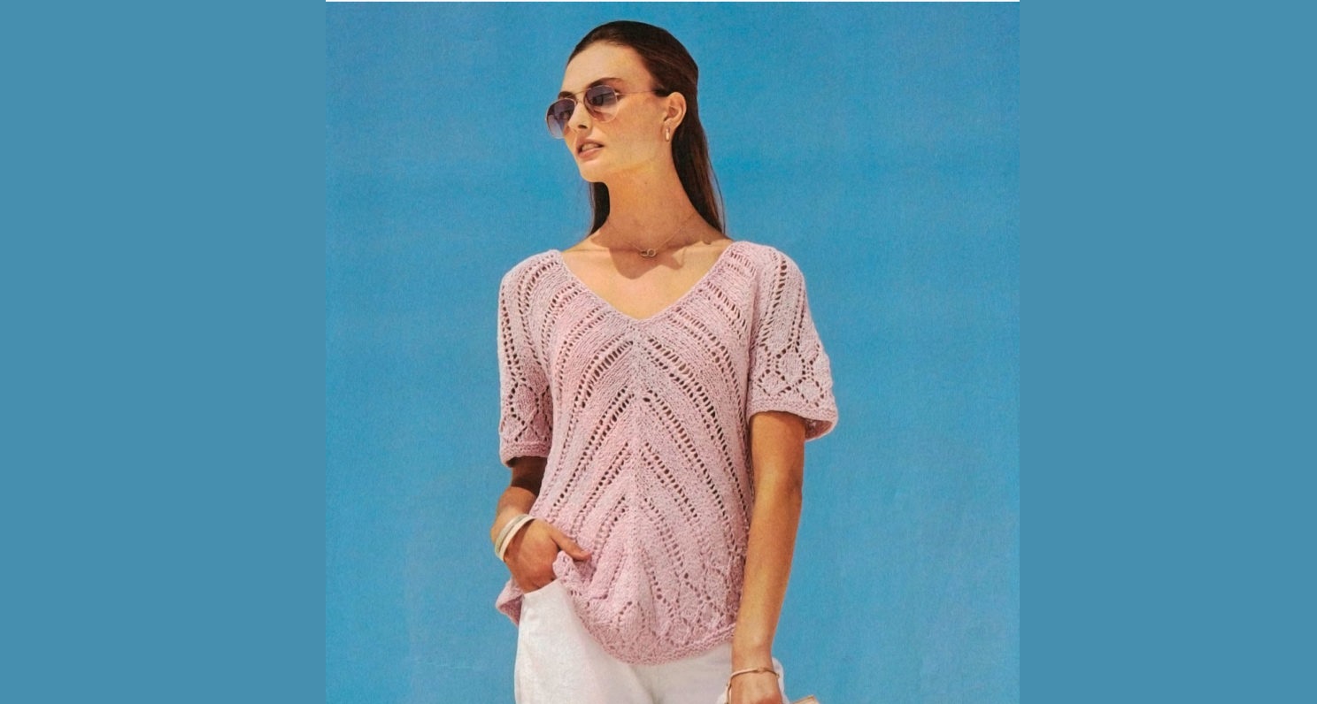 Оригинальный пуловер из хлопчатобумажной ленточной пряжи вяжется сверху вниз  единым полотном круговыми рядами.