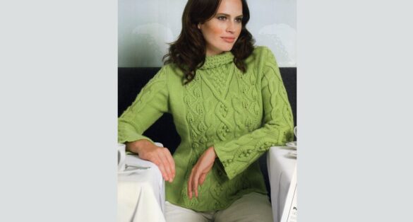 Удлиненный пуловер с объемными рукавами и ажурным узором