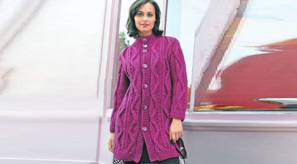 The model for women is made with knitting needles in beautiful drop, heart, Eiffel Tower patterns and with a deep cutout at the front.