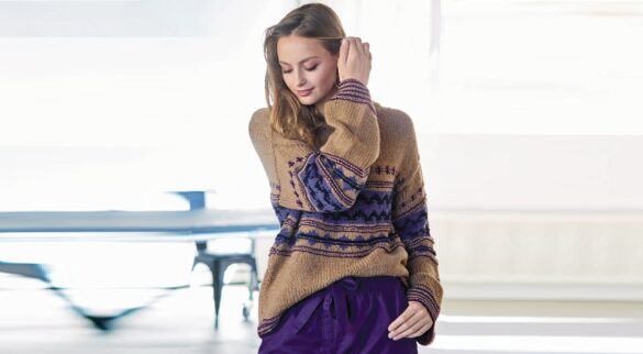 A knitted jumper with an openwork yoke is knitted in circular rows with a special rise on the back, which makes the model very comfortable.