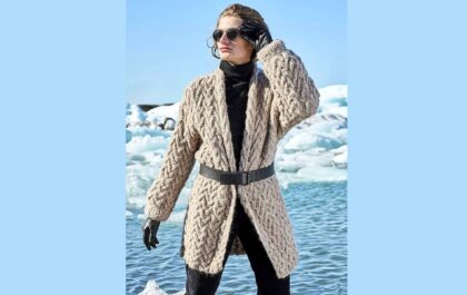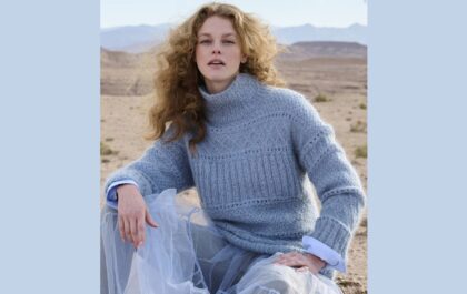 Этот женственный пуловер потребует много времени, и не только из-за двух разных узоров, идущих друг за другом полосами, но также из-за убавок для рукавов реглан. Есть и преимущество: хлопково-шерстяная пряжа обеспечит комфорт при носке даже в прохладные осенние деньки.