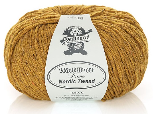 Вам потребуется: пряжа BUTTINETTE”Woll Butt Nordic Tweed” ((55% шерсти, 23% полиамида, 15% вискозы, 7% шелка; 133 м/50 г) — 400 (450) 500 г горчичной; спицы № 4; круговые спицы 4.