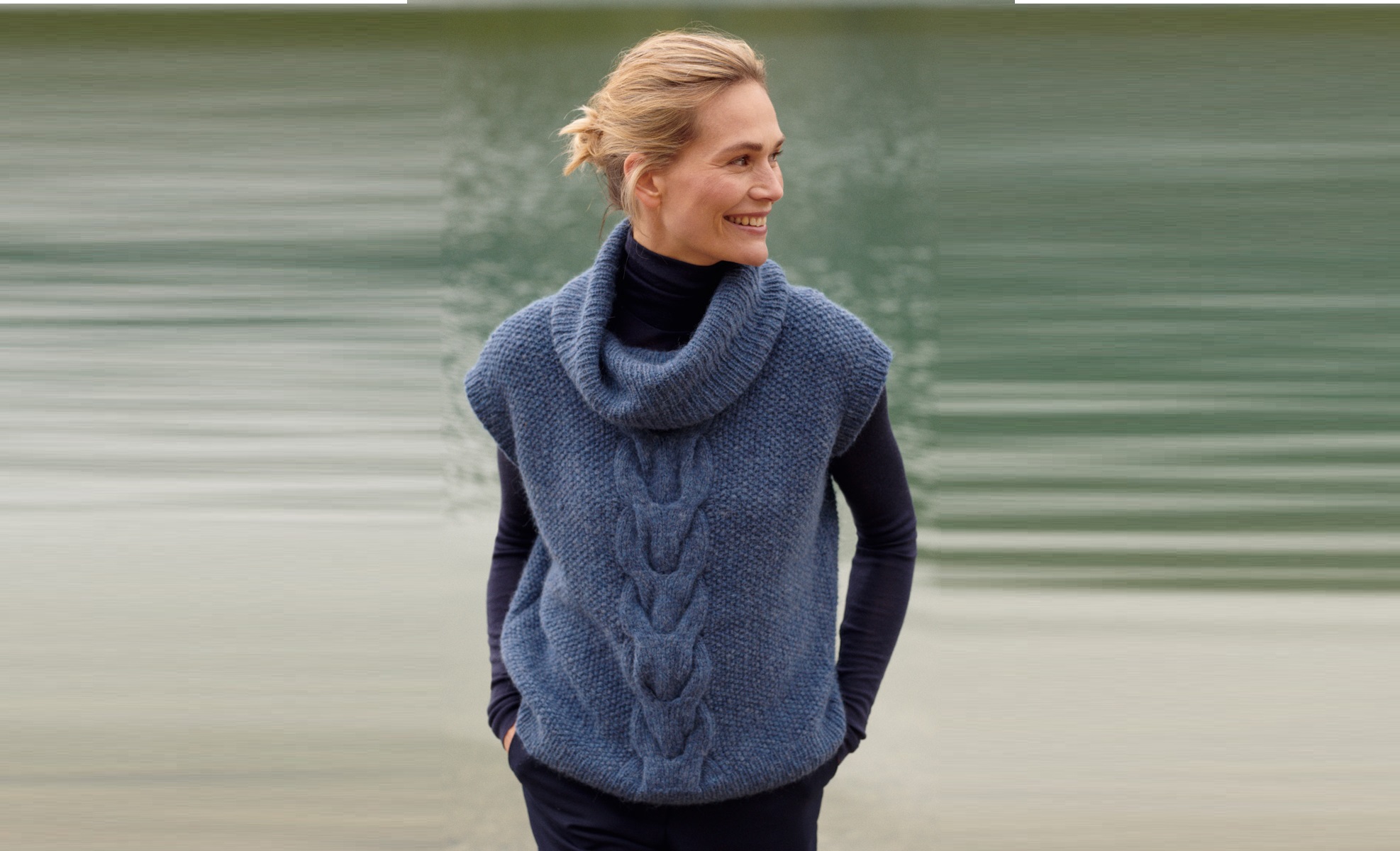 Пряжа: 300 (350-350) г джинсовой пряжи (цв.7) Baby Light (62% шерсти альпака, 23% мериноса, 15% полиамида) 180 м/50 г от Lana Grossa.