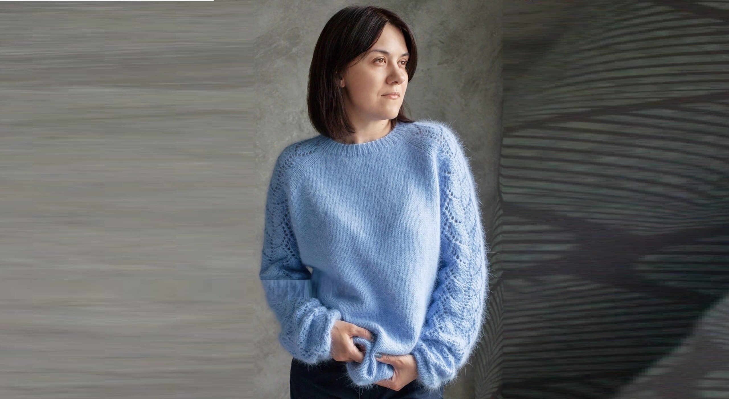 Рукава вяжутся отдельно до проймы, а затем добавляются к основному полотну (реглан).