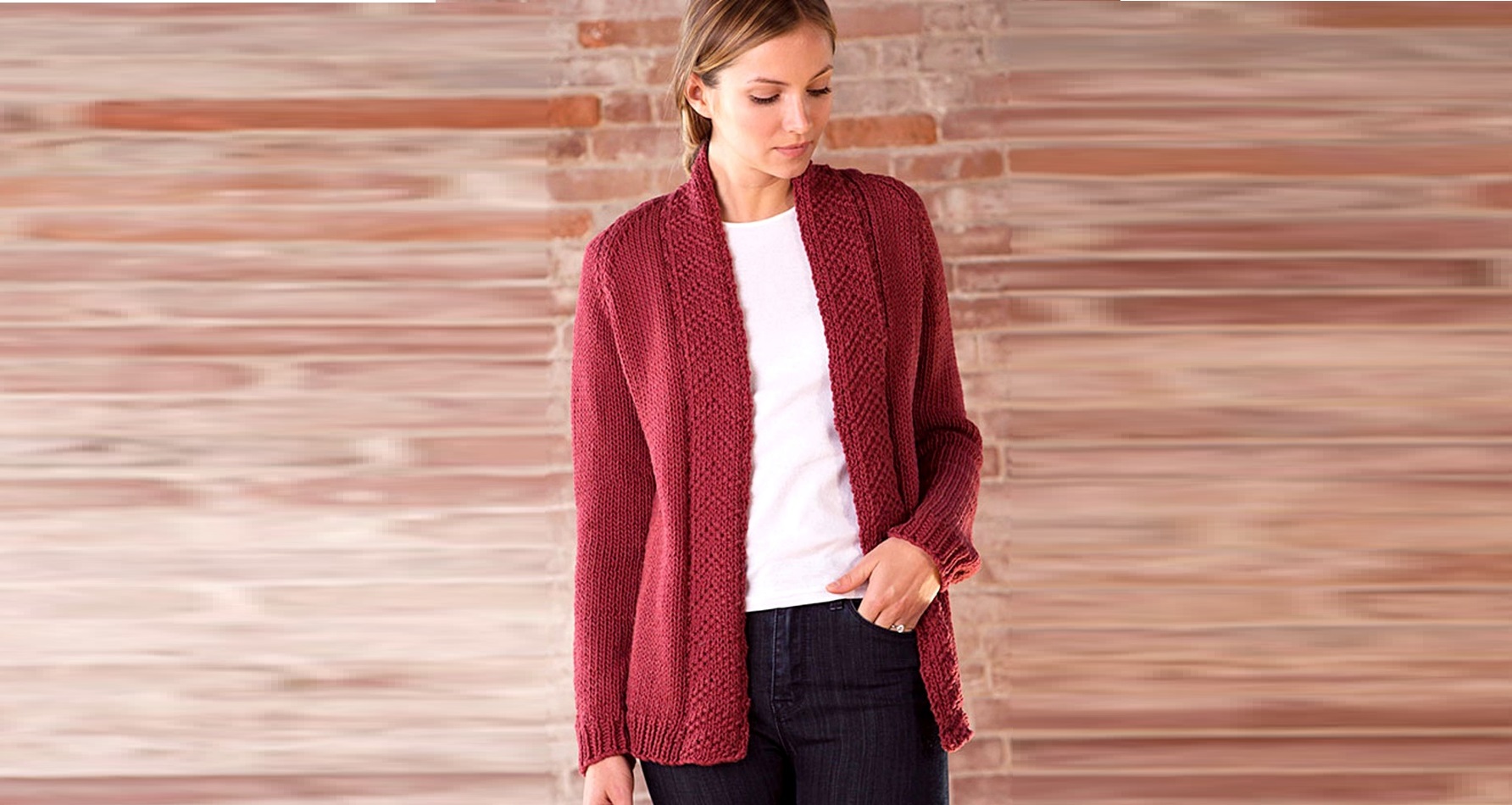 Жакет от Berroco вяжется отдельными деталями согласно приложенной выкройке, снизу вверх. Размеры стандартны: X-S (S, M, L, 1X и 2X).