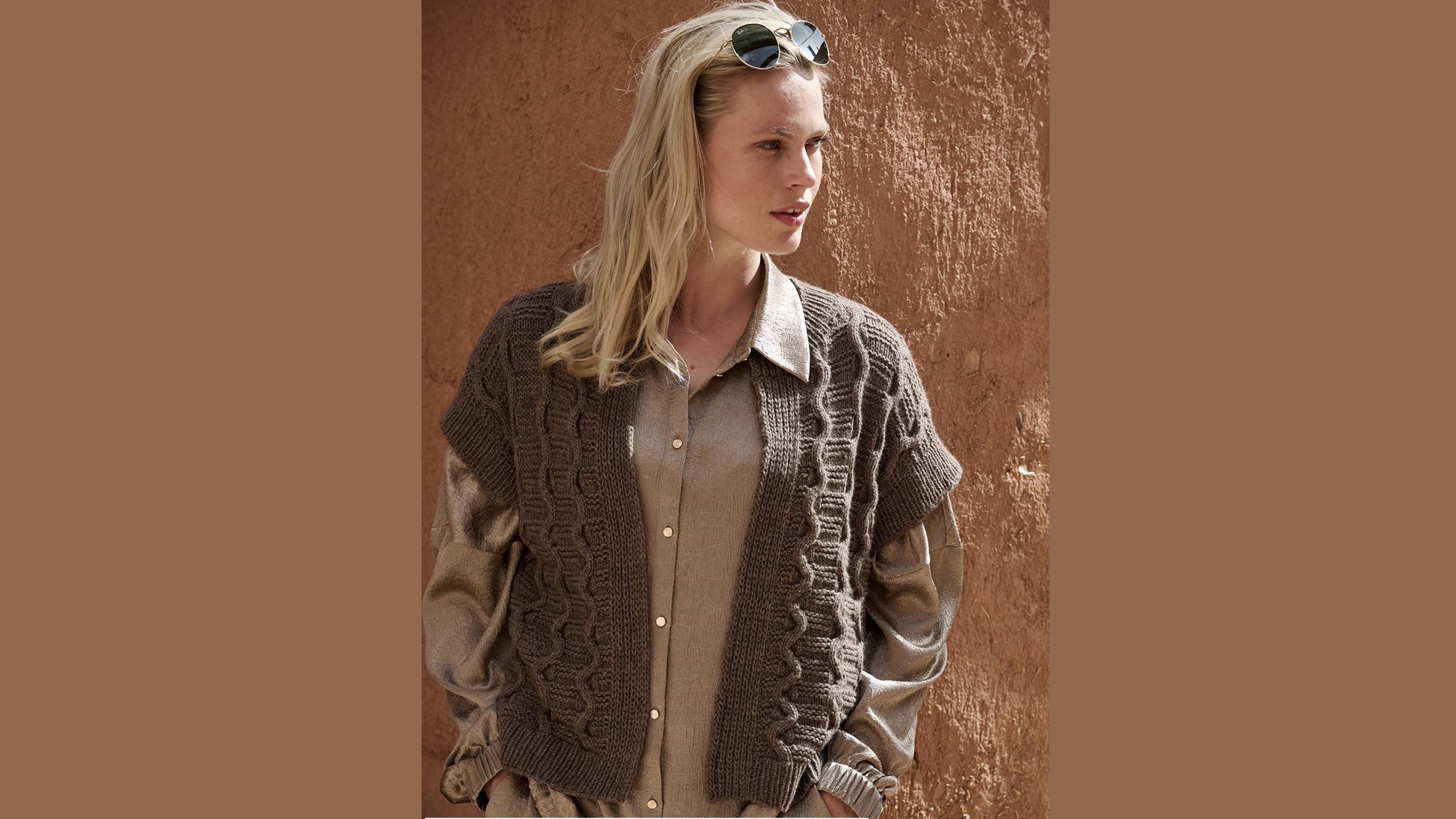 Вам потребуется: пряжа LANGYARNS “Yak” (70% овечьей шерсти, 30% шерсти яка; 120 м/50 г) — 350 (400) 400 г коричневой Braun (Fb 39); спицы № 4,5 и 5; круговые спицы № 4,5.