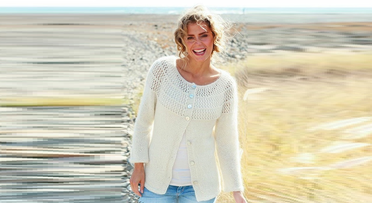 Бежевый кардиган с ажурными дорожками