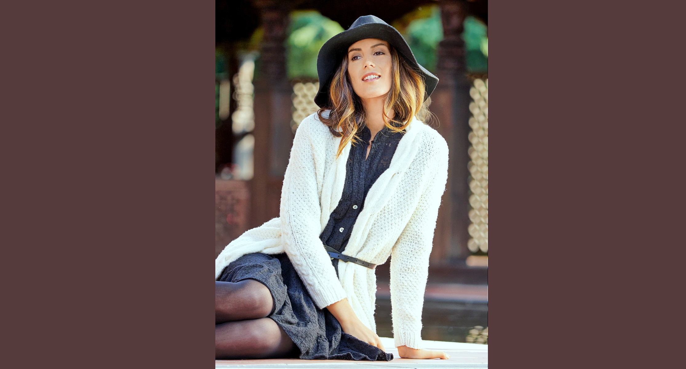 Жемчужный узор превосходно сочетается с «косами они плавно ложатся вдоль передних краев и огибают шею, украшают боковые и плечевые швы, а также подчеркивают середину спинки, то есть красивую осанку. Изящный кардиган, не имеющий застежки, можно носить с ремнем или без него.