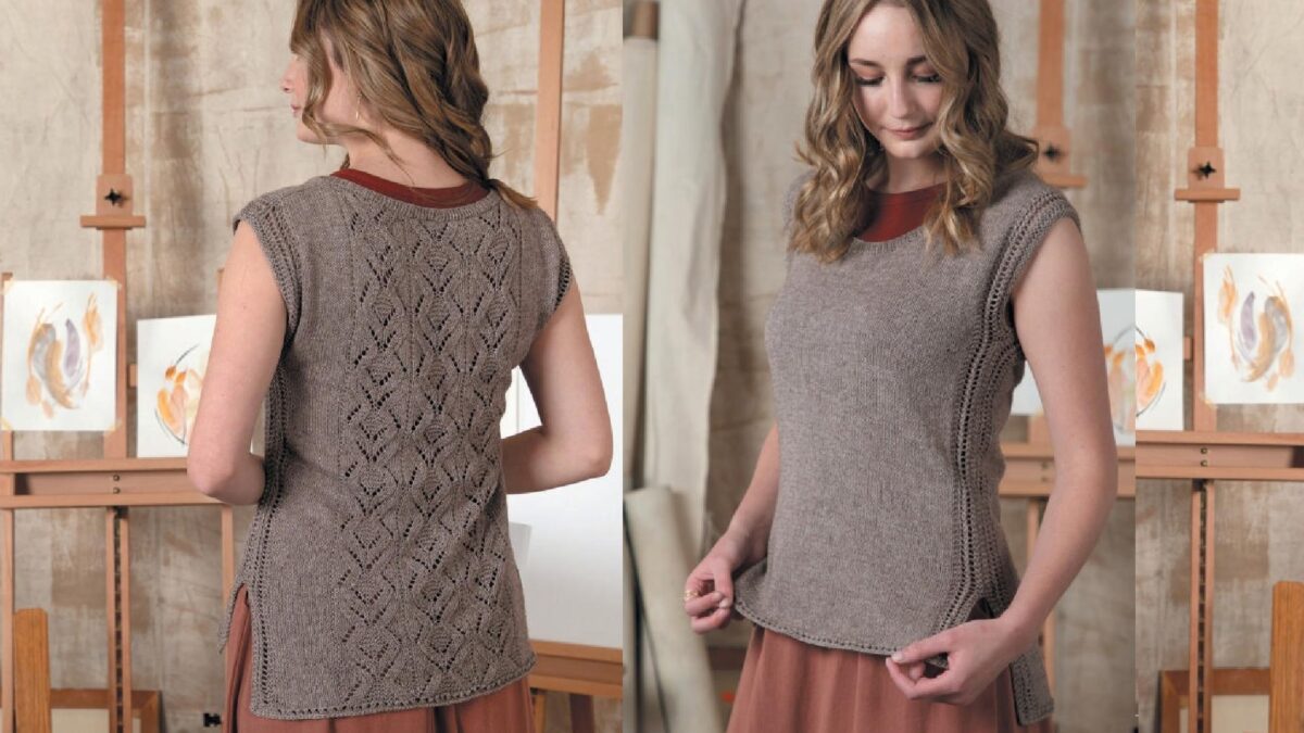 Продолжать вязать в установленном порядке до 24-го ряда ажурного рисунка включительно, затем повторять ряды 1-24, пока высота вязания не достигнет 43 см от наборного ряда. Поместить съемные маркеры на каждый край последнего ряда для обозначения проймы. Вязать далее прямо, пока высота проймы не достигнет 20.5 (20.5, 20.5, 21.5, 21.5, 23, 23) см от маркеров, закончить изнаночным рядом. Закрыть все петли.