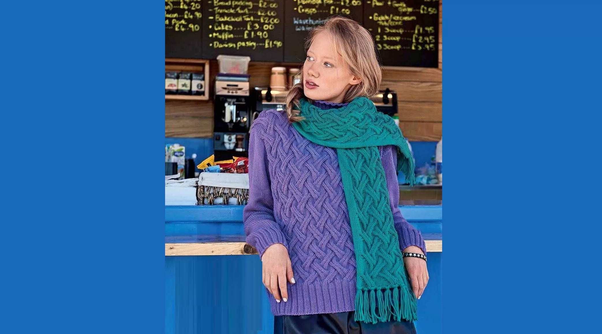 Плотность вязания шарфа такая же, как у свитера.