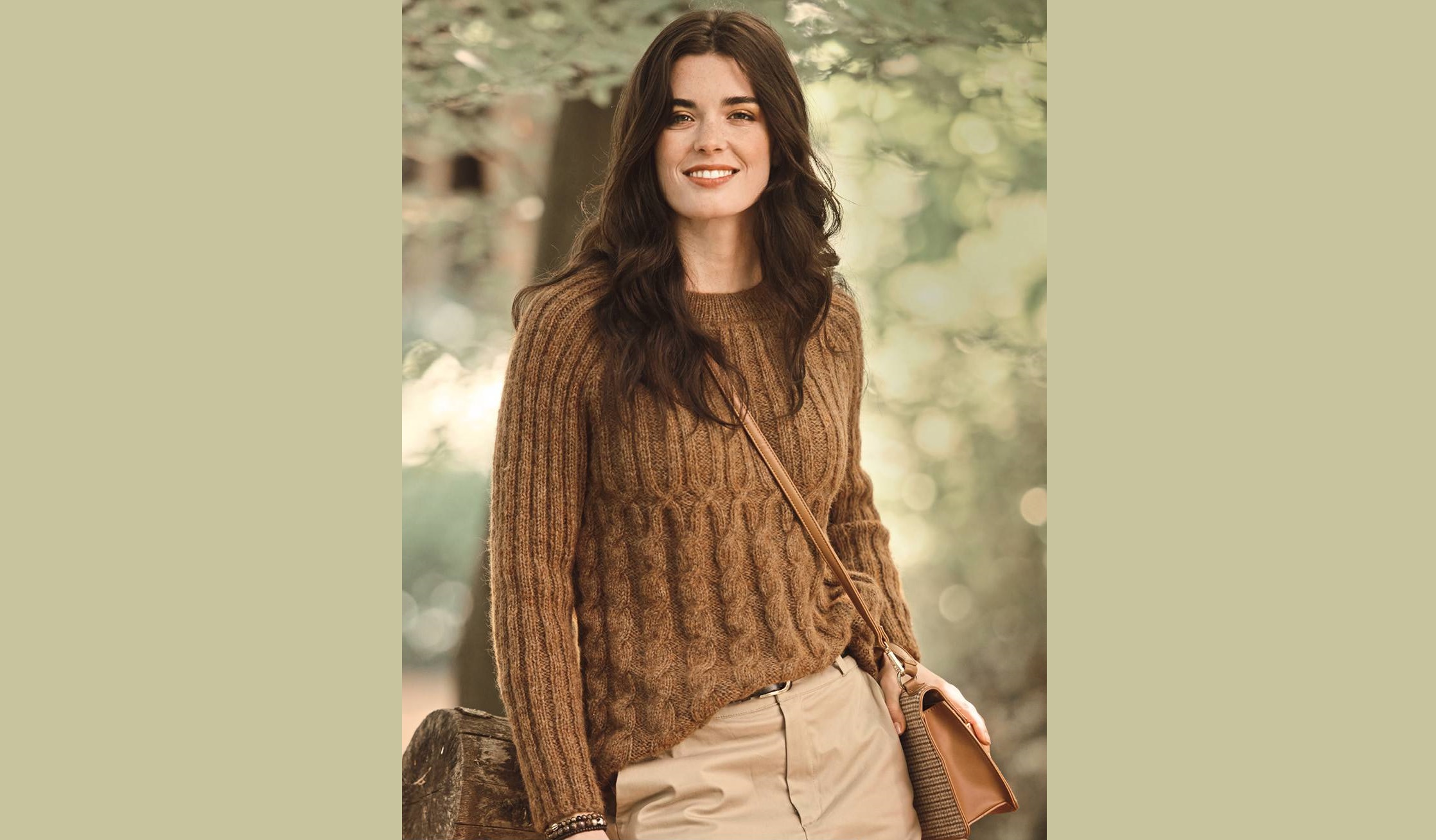Вам потребуется: пряжа FISCHER WOLLE “Irland” (30% шерсти альпака, 28% хлопка, 28% полиэстера, 14% шерсти; 135 м/50 г) — 400 (450) 500 г цв. корицы  Zimt (Fb 725012); спицы № 4,5 и 5,5; круговые спицы № 4,5.