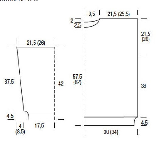 Для этого через 53 см = 124 р. (57,5 см = 136 р.) от планки за крыть средние 10 п. и обе стороны закончить раздельно.