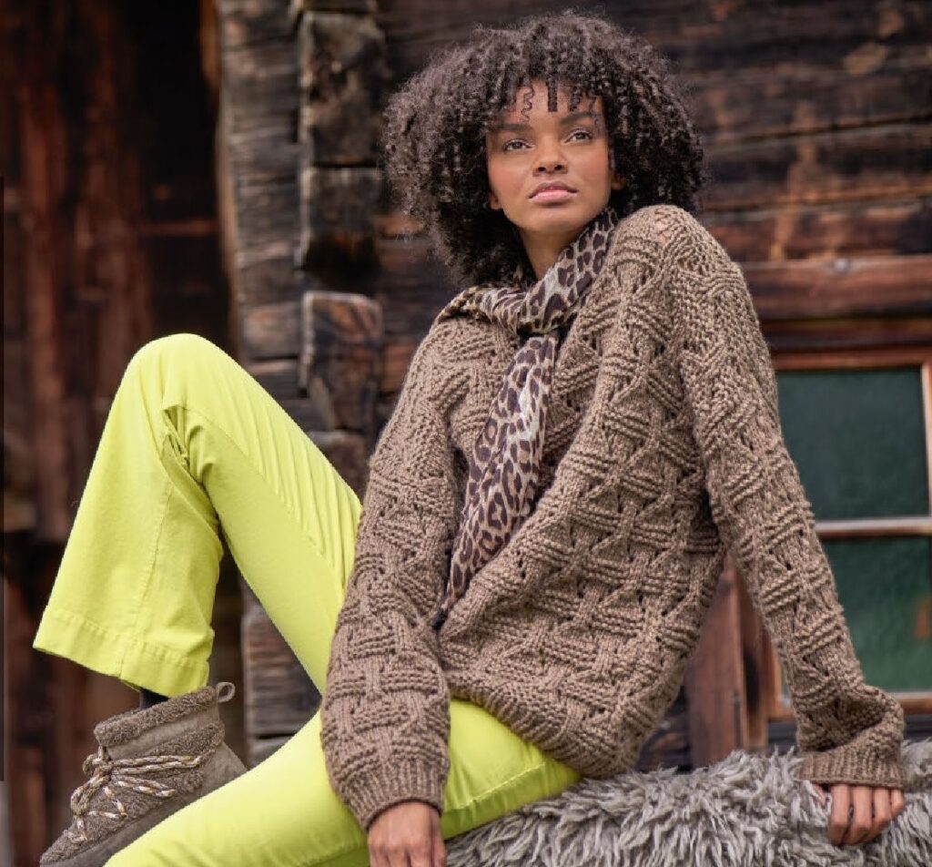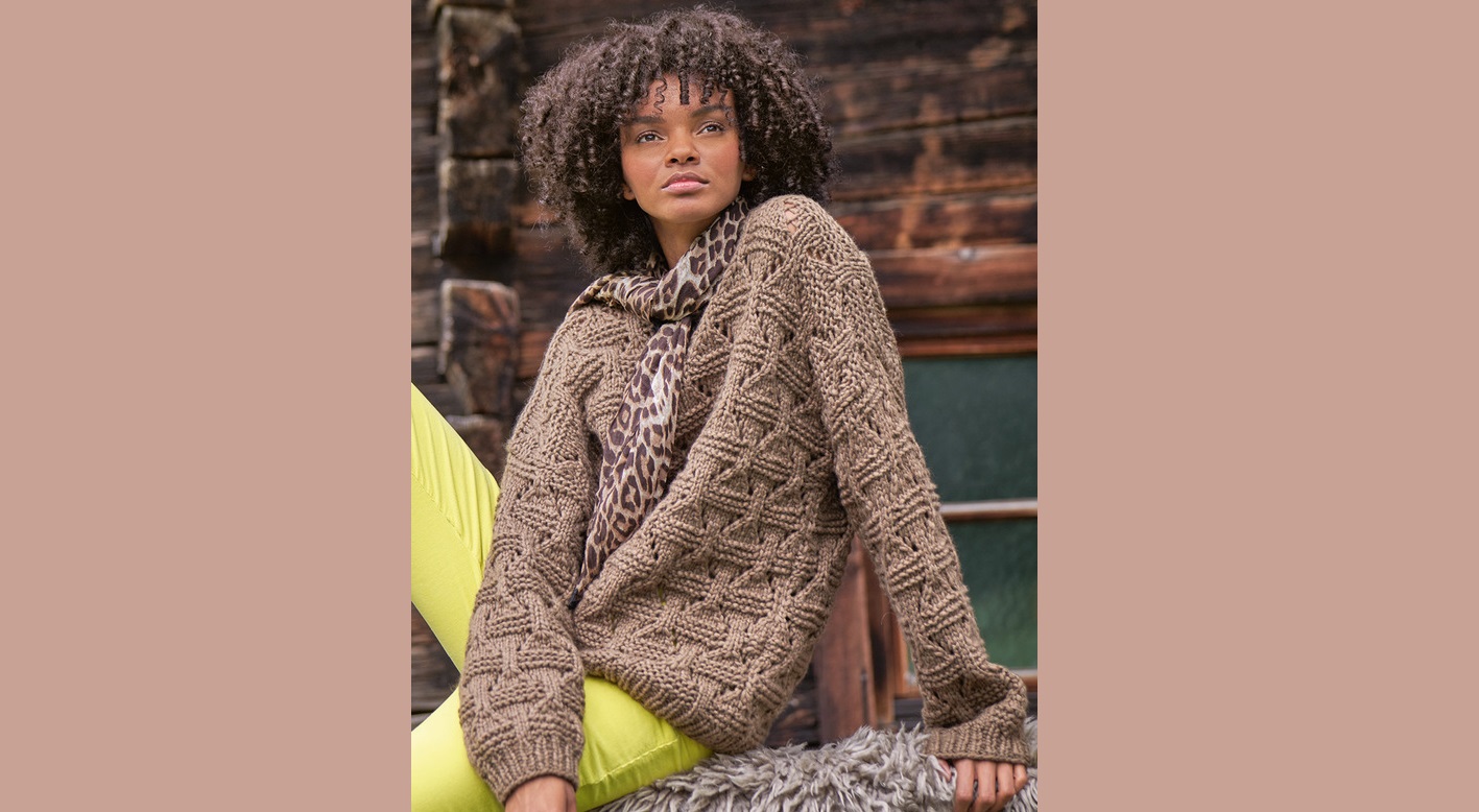 Вам потребуется: пряжа LANA GROSSA”Landlust Winterwolle” (50% овечьей шерсти, 35% хлопка, 15% шерсти яка; 70 м/50 г) – 600 (650) г серо-коричневой меланжевой; спицы № 5,5 и 6,5; круговые спицы № 5.5.