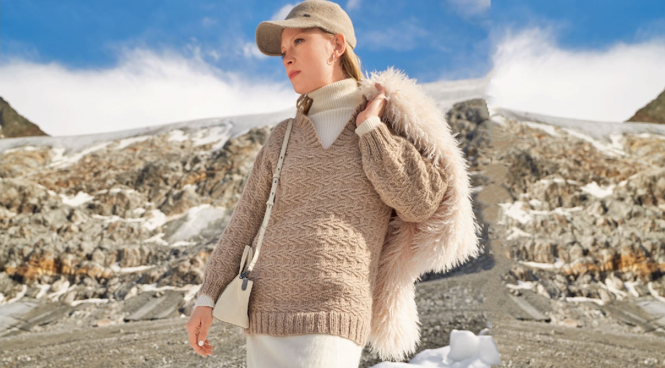В основе данной модели — очень качественная пряжа, полностью состоящая из шерсти ламы. Красивая плетеная структура полотна возникает за счет снятых петель, при этом нить остается то перед, то за работой.