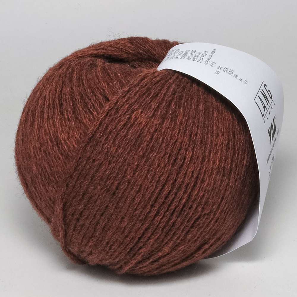Вам потребуется: пряжа LANGYARNS “Yak” (70% овечьей шерсти, 30% шерсти яка; 120 м/50 г) — 600 (650) 700 г красно-коричневой Rotbraun (Fb 62); спицы № 4,5 и 5; круговые спицы № 4,5.