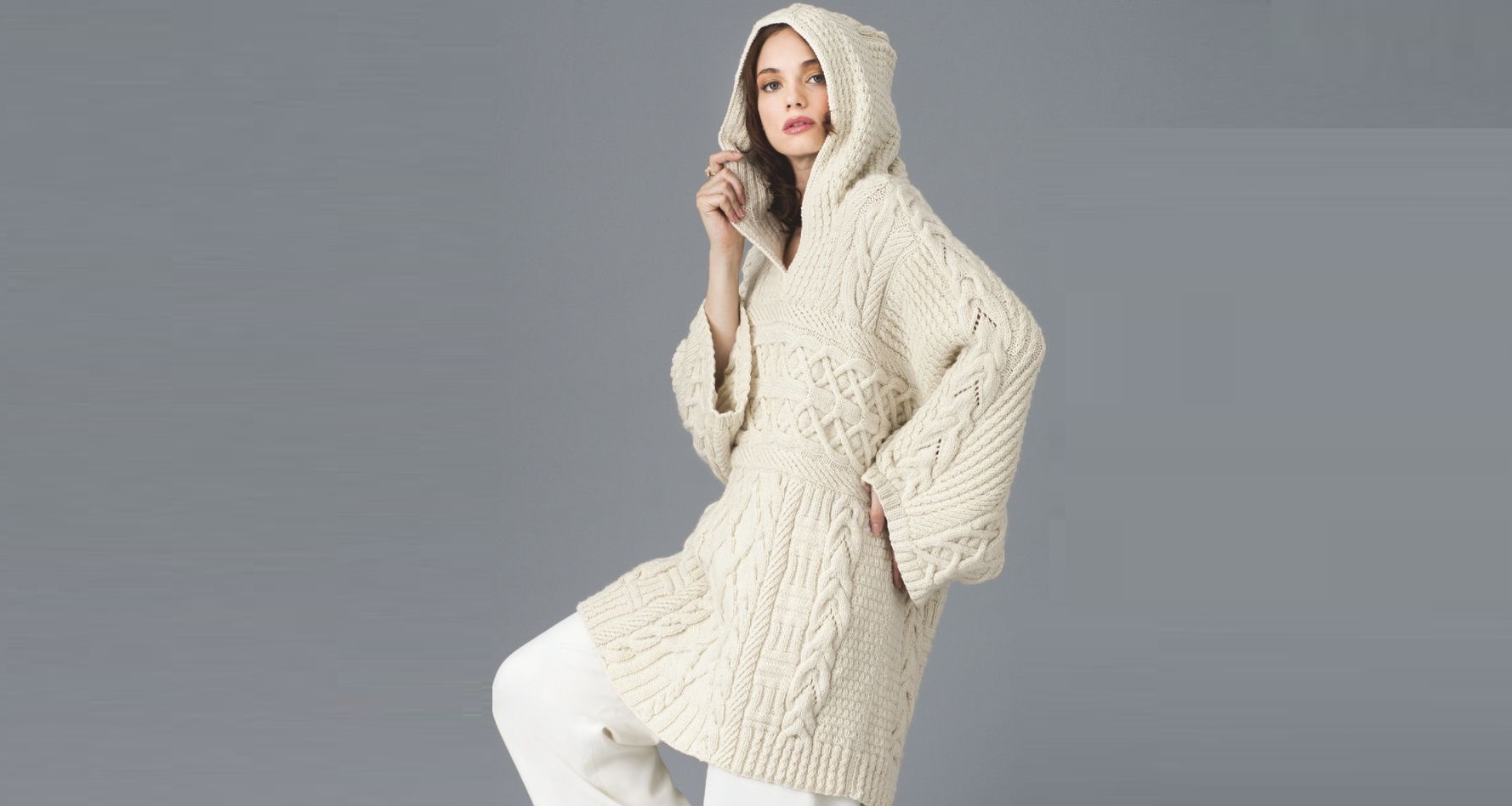 Очень свободный пуловер с объемным капюшоном, связанный в разных направлениях с многочисленными Узорами из Кос и Текстурными Узорами из лиц. /изн. петель.