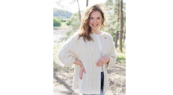 Комбинация шерсти и хлопка с вискозой - идеальный состав для тех, кто чувствительно реагирует на чистую шерсть. А прелестные «косы» на переде, спинке и рукавах придутся по вкусу абсолютно всем.